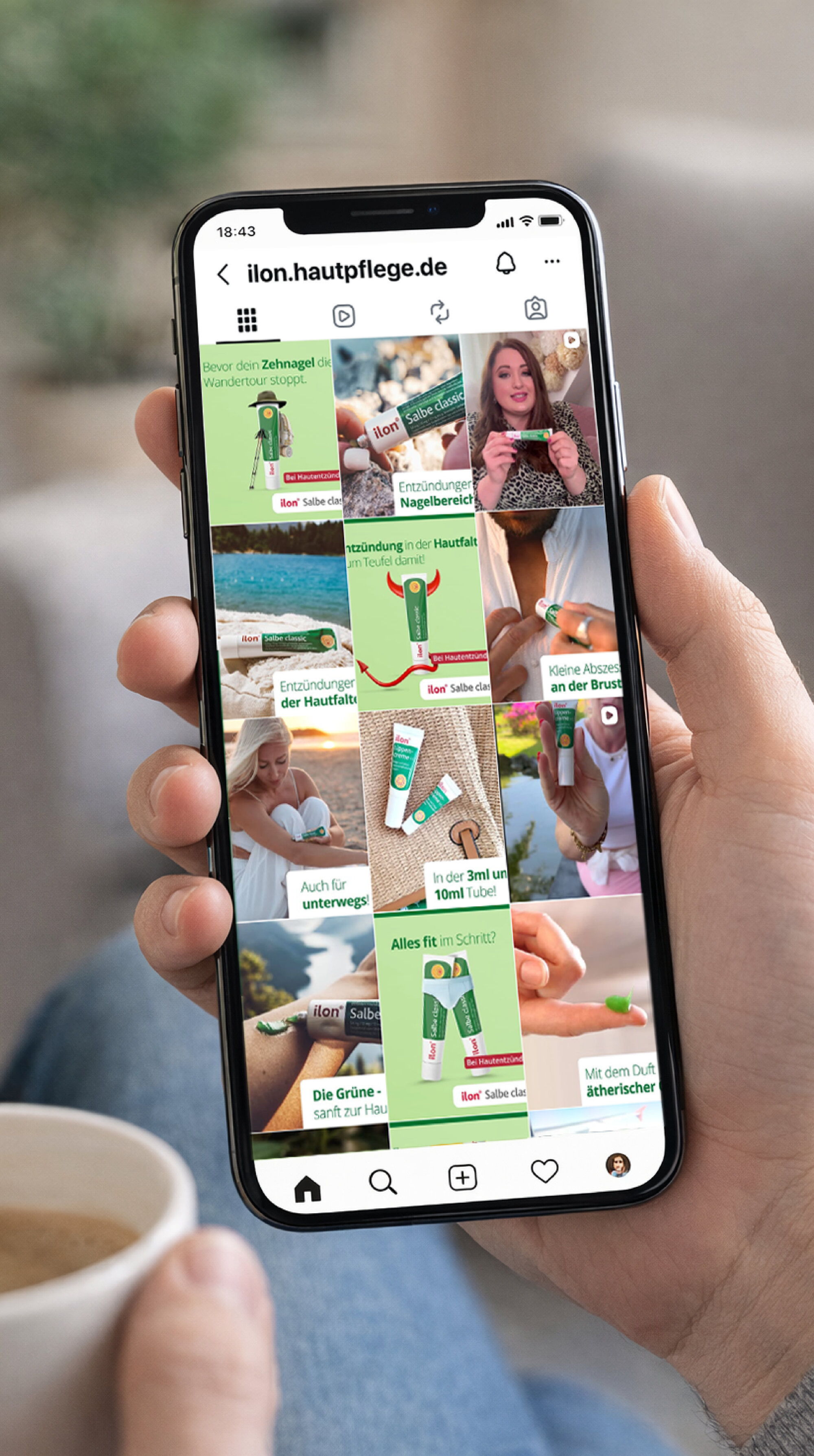 Hautbeschwerden sind lästig, können optisch stören und sogar richtig schmerzen. Oft tauchen sie zum ungünstigsten Zeitpunkt auf: vor einem Bewerbungsgespräch, wichtigen Meetings, dem ersten Date, der Party oder im Strandurlaub. Immer dann ist ilon zur Stelle und hilft mit der Kraft der Natur. Mit einer umfassenden Social Media Kommunikation zu persönlichen Lebenssituationen und saisonalen Anlässen machten wir auf die vielen Vorteile der ilon Produkte aufmerksam.