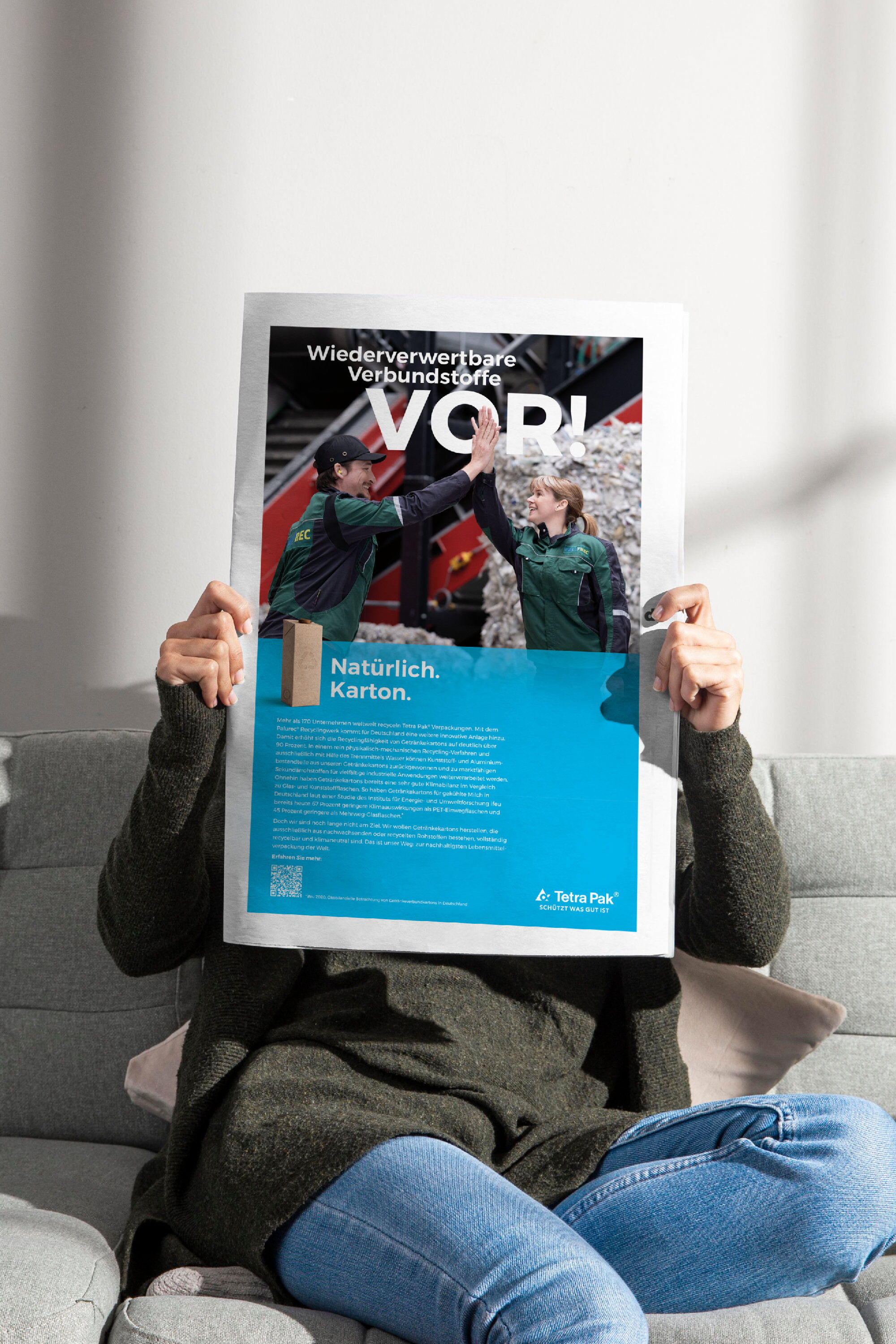 Tetra Pak ist weltweiter Marktführer bei der Verarbeitung und Verpackung von Lebensmitteln. Seit 2020 begleiten wir das Unternehmen auf dem Weg zur nachhaltigsten Lebensmittelverpackung der Welt. Bereits heute bestehen Tetra Pak Kartonverpackungen überwiegend aus nachwachsenden Rohstoffen und recycelten Materialien und lassen sich durch die richtige Entsorgung und moderne Recyling-Anlagen weiterverwerten. Mit Aufklärungskampagnen in Deutschland, Österreich und der Schweiz informieren, inspirieren und motivieren wir Lebensmittelherstellende, Verbraucher und Verbraucherinnen, uns auf diesem Weg zu begleiten. Über TV, Print, Online und Social Media.